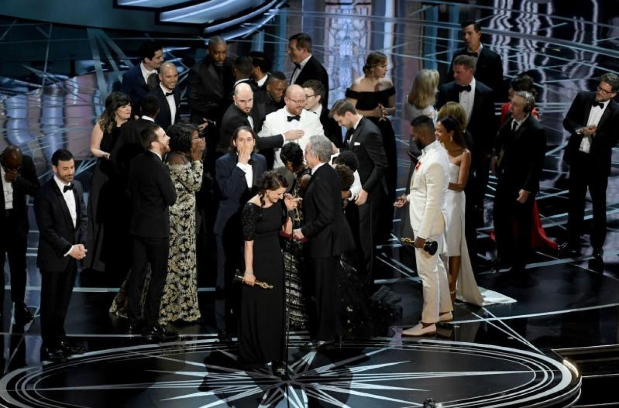 El equipo detrás del filme de Damien Chazelle se encontraba realizando el discurso de agradecimiento cuando la organización de los premios apareció para expresarles la equivocación que había ocurrido. Ninguna persona dentro del Dolby Theatre de Los Angeles entendía lo que pesaba. Incluso, el productor Jordan Horowitz tuvo que repetir en varias ocasiones que esto no era una broma.