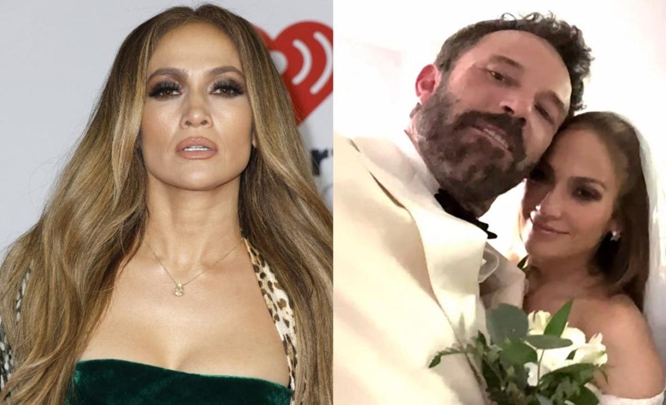 Jennifer Lopez compartió las primeras imágenes de su vestido de novia a través de su boletín oficial, OnTheJLo. La cantante contrajo matrimonio con el actor Ben Affleck, el pasado sábado 16 de julio en Las Vegas.