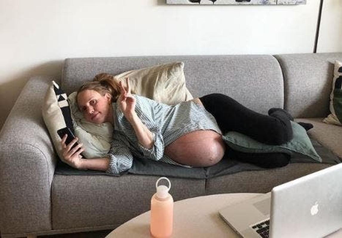 "Me alegro de que hayamos tomado estas fotos, porque este collage realmente muestra el crecimiento de la panza. Es extraño haber terminado con un vientre tan grande", escribieron en la cuenta, tres días antes del parto.