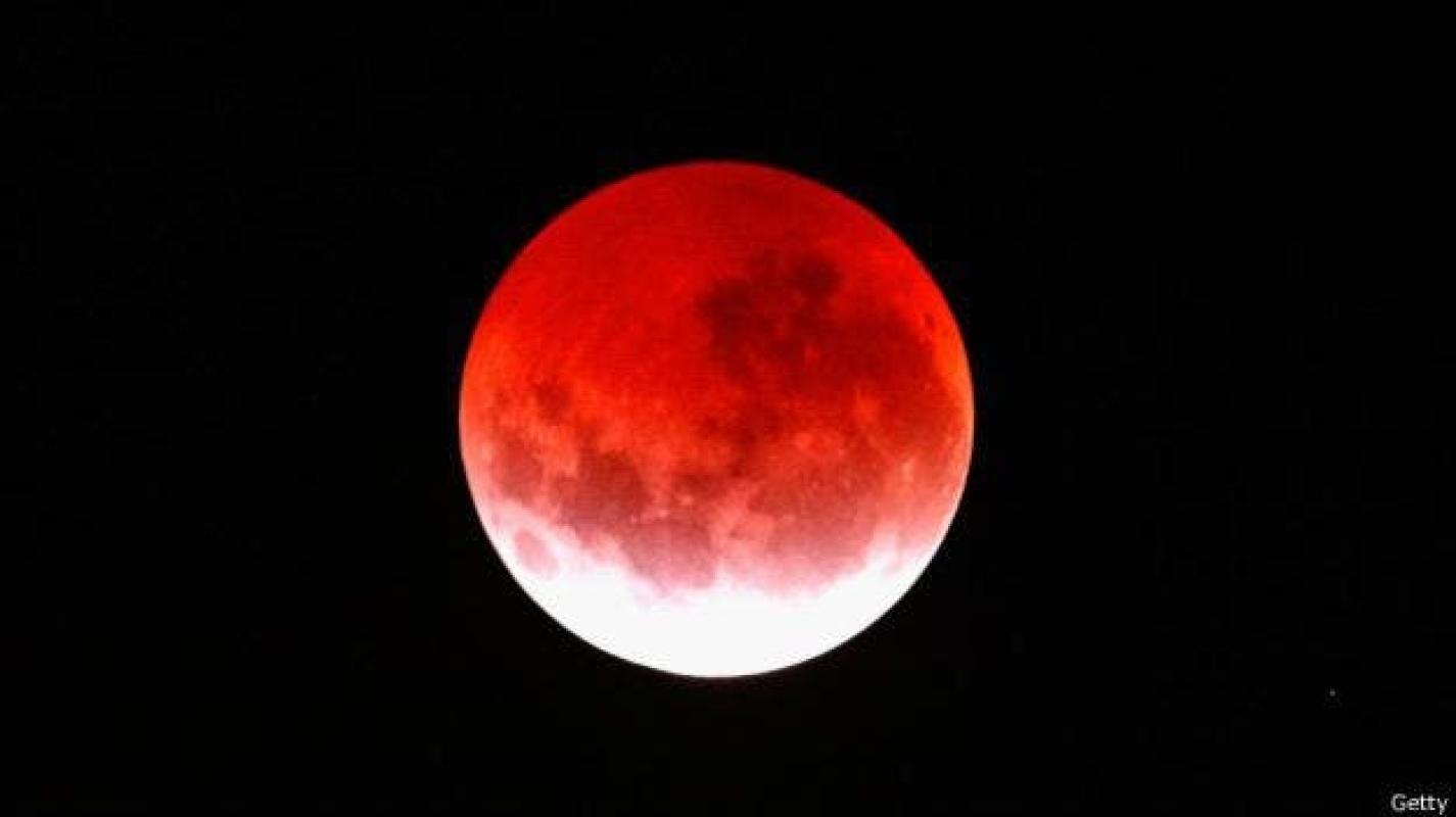 La Luna se vio rojiza debido al reflejo de la luz solar que pasa a través de la atmósfera de la Tierra. Este misterioso efecto se conoce popularmente como "luna de sangre".