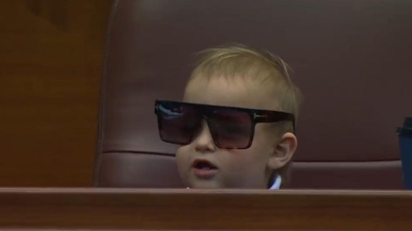 En uno de los momentos, se vio al pequeño pidiéndole los lentes de sol a su madre, Laura Urruticoechea, quien accedió a pasárselos.