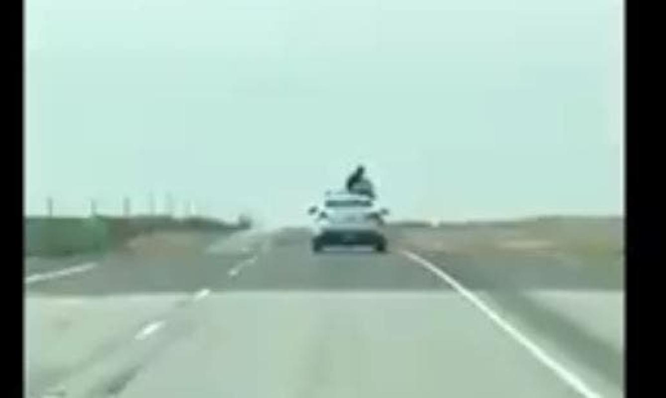 [VIDEO] Hombre intenta escapar de la policía subiendose al techo de una patrulla en movimiento