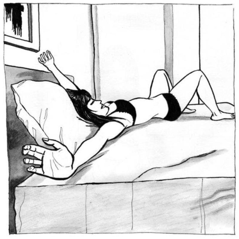 Sin embargo, en el libro "A solas", aunque las mujeres pueden estar semidesnudas, la sensualidad surge casi como un efecto involuntario: si se sacan la ropa es porque quieren sentir las sábanas frías contra la piel o liberarse de una prenda incómoda después de un largo día de trabajo.