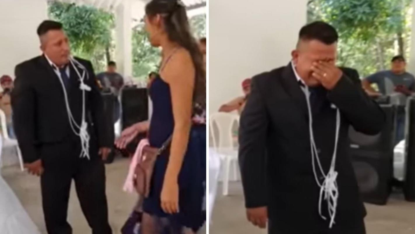 A través de redes sociales, se viralizó una insólita situación ocurrida en una boda, donde un novio terminó llorando en su matrimonio tras ver llegar a su expareja con otro hombre.