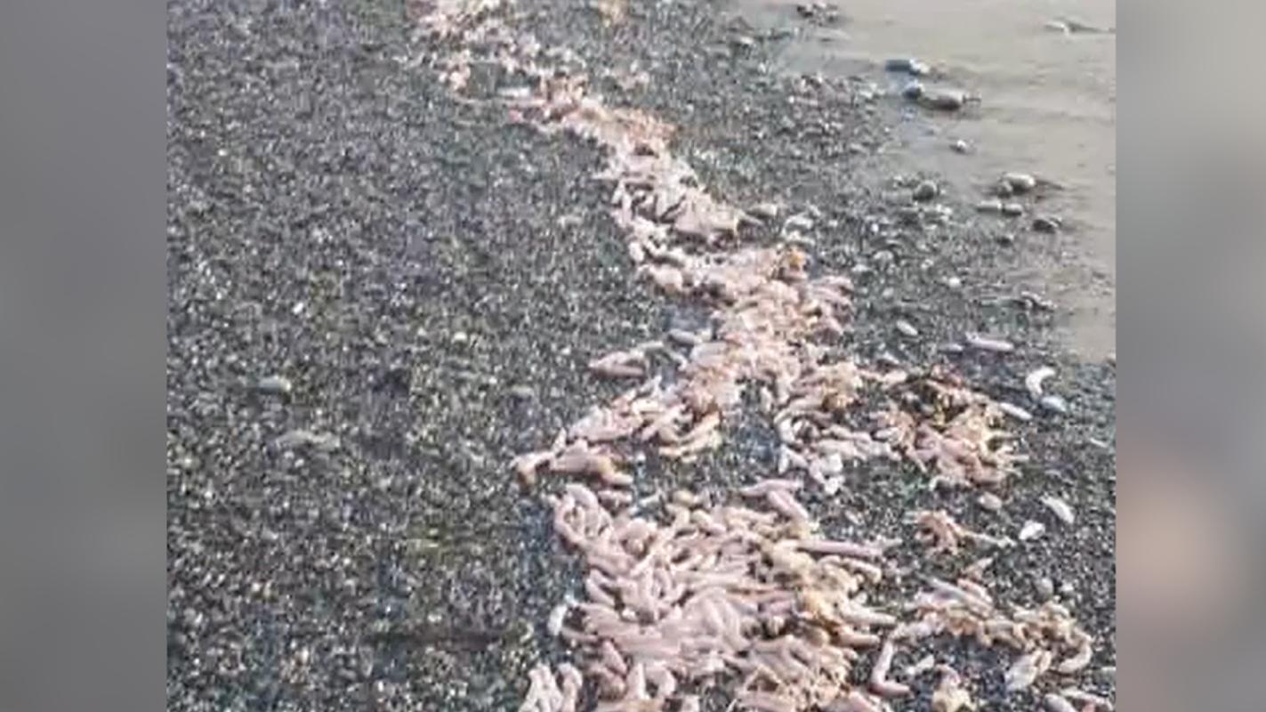Durante esta semana se han viralizado imágenes de una playa en la Patagonia de Argentina infestada de “peces pene”.