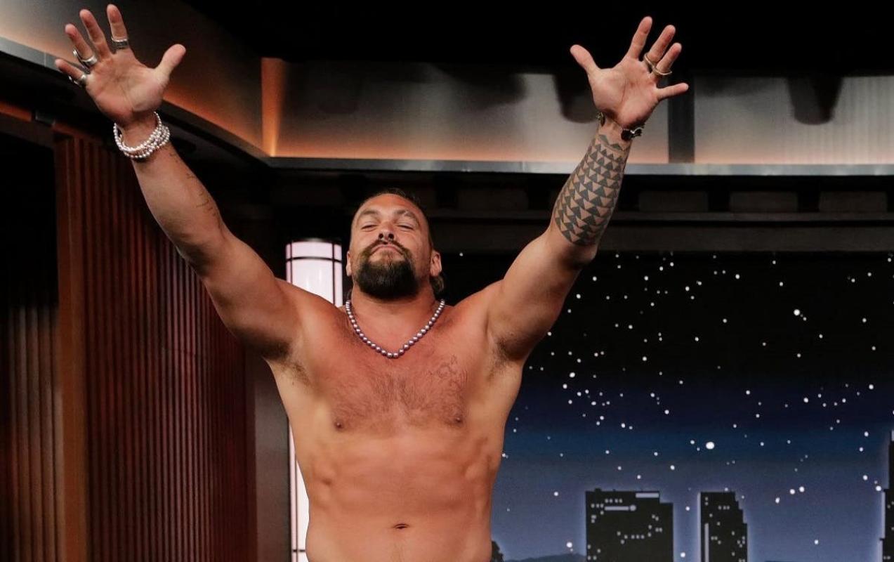 Jason Momoa sorprende al desnudarse en plena entrevista para mostrar vestuario de su nuevo personaje