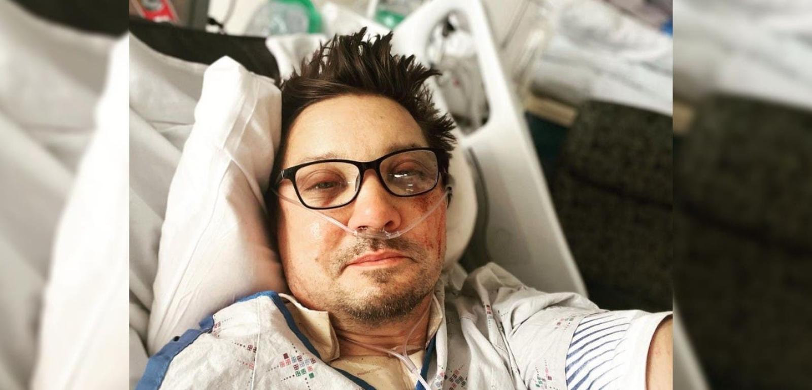 Renner, que fue trasladado en helicóptero a Reno, publicó un selfie el martes desde su cama de hospital, mostrando fuertes hematomas en la cara.