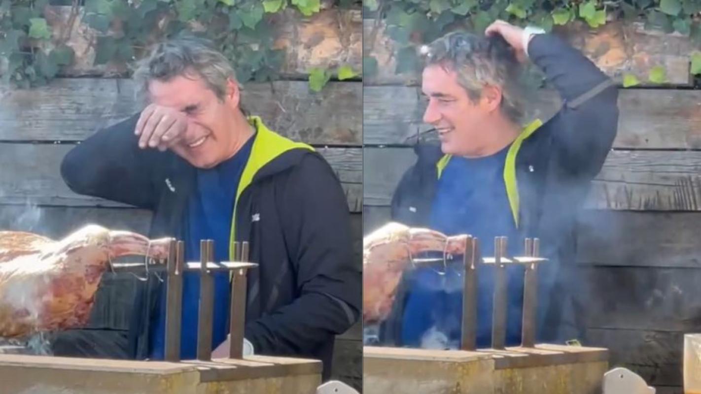 En los primeros segundos del video, se puede apreciar a José Luis un poco complicado luego de haberse ofrecido como asador de un cordero.