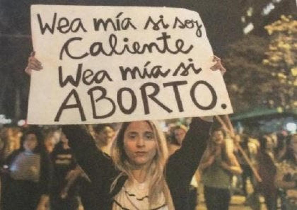 En marzo de 2016, para una marcha del Día de la Mujer por la Alameda, esta joven hizo un cartel que decía "wea mía si soy caliente, wea mía si aborto". The Clinic le tomó una fotografía y un año después se convirtió en meme. Es que la postal reflotó este 2017 por el hecho de la despenalización del aborto en tres causales.