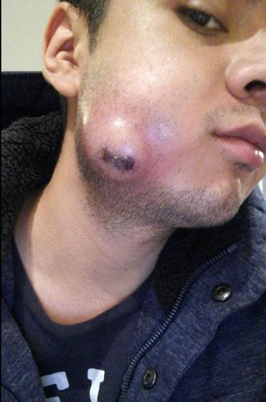 Cuando ya habían pasado dos semanas, una bola comenzó a surgir en la cara del joven mexicano, no obstante, el terco muchacho no acudió de manera inmediata a atenderse y no fue hasta que un par de días después, se vio obligado a asistir a un centro médico.