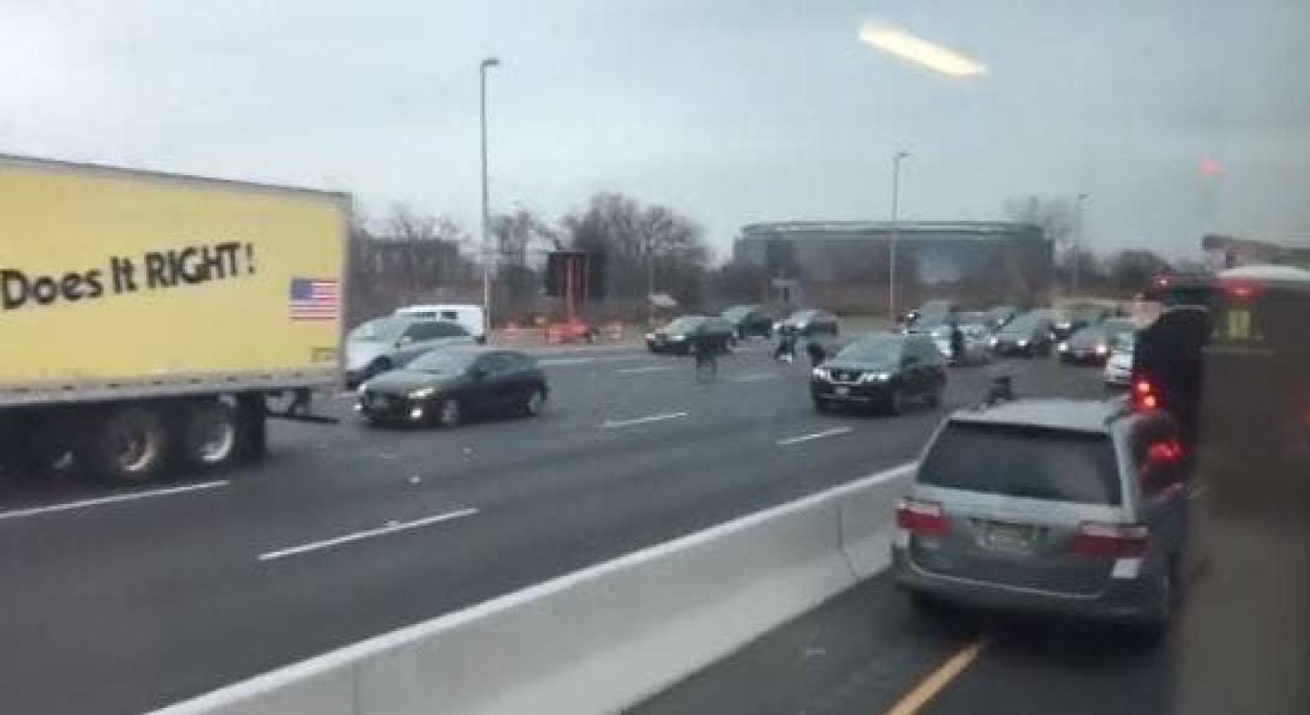Muchos de los automovilistas se detuvieron para recoger fajos, lo cual generó accidentes y atascos , dijo la policía de East Rutherford en Twitter.