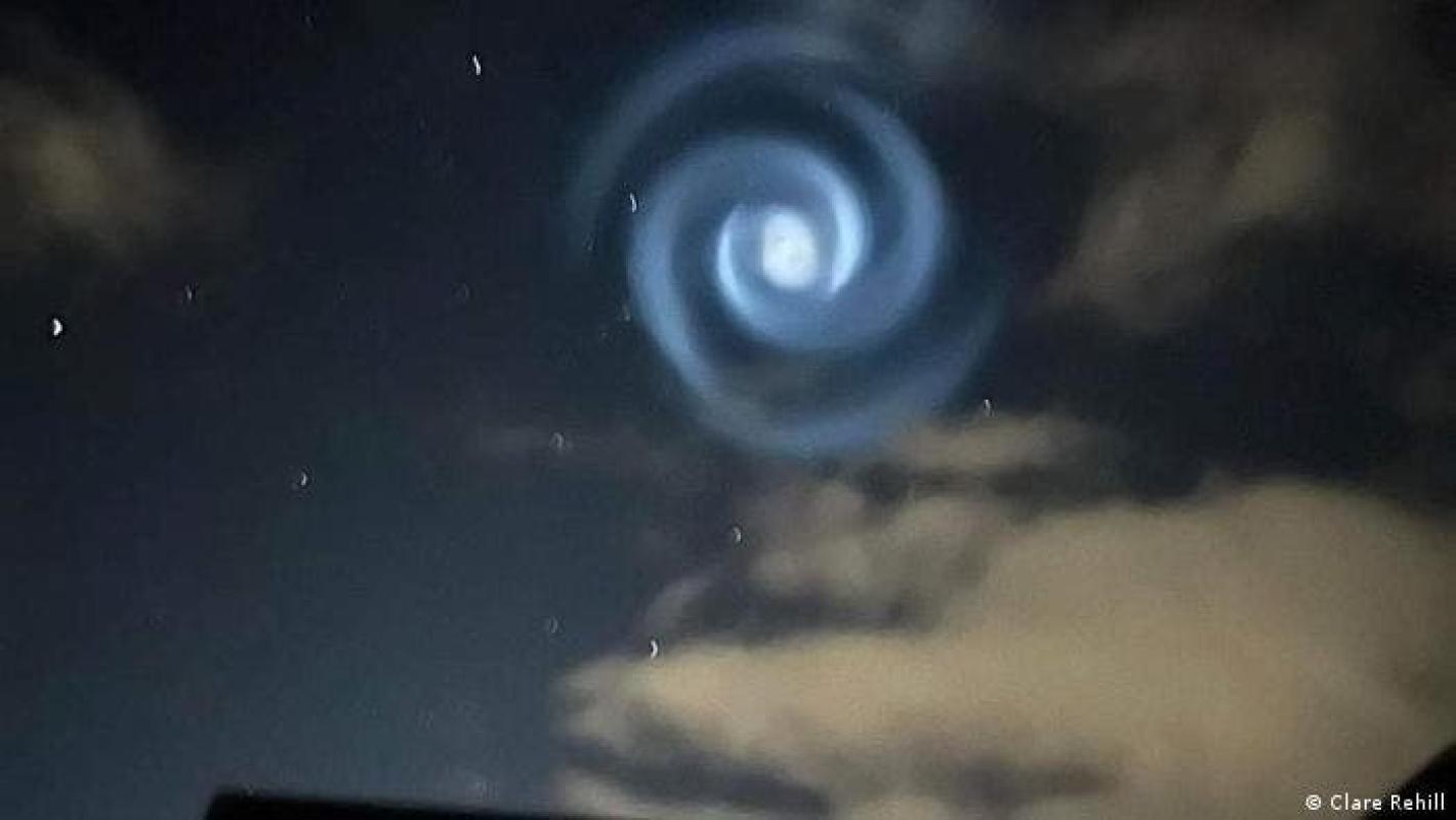 La realidad era probablemente un poco más prosaica, dijo a The Guardian el profesor Richard Easther, físico de la Universidad de Auckland, que calificó el fenómeno de "extraño pero fácilmente explicable". Según Easther, la espiral fue causada por un penacho de escape de cohete que fue iluminado por el sol.