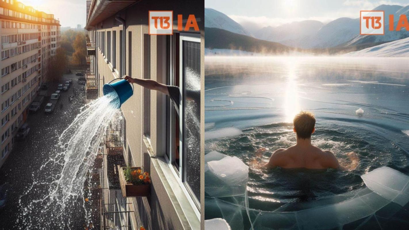 Foto creada con IA/Desde lanzar cubos de hielo hasta un chapuzón en aguas heladas: Las 5 cábalas y tradiciones más raras para recibir el Año Nuevo