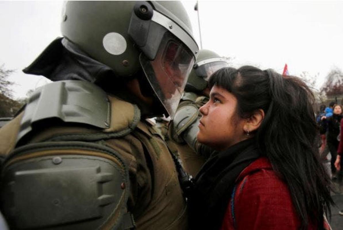 La imágen, que fue tomada por el fotógrafo de Reuters, Carlos Vera, ocurrió durante el enfrentamiento de la policía con los manifestantes ante los primeros disturbios. La fotografía no estuvo excenta de polémica, ya que días después de su publicación, una segunda imágen mostro a la menor levantándole el dedo medio al mismo uniformado.