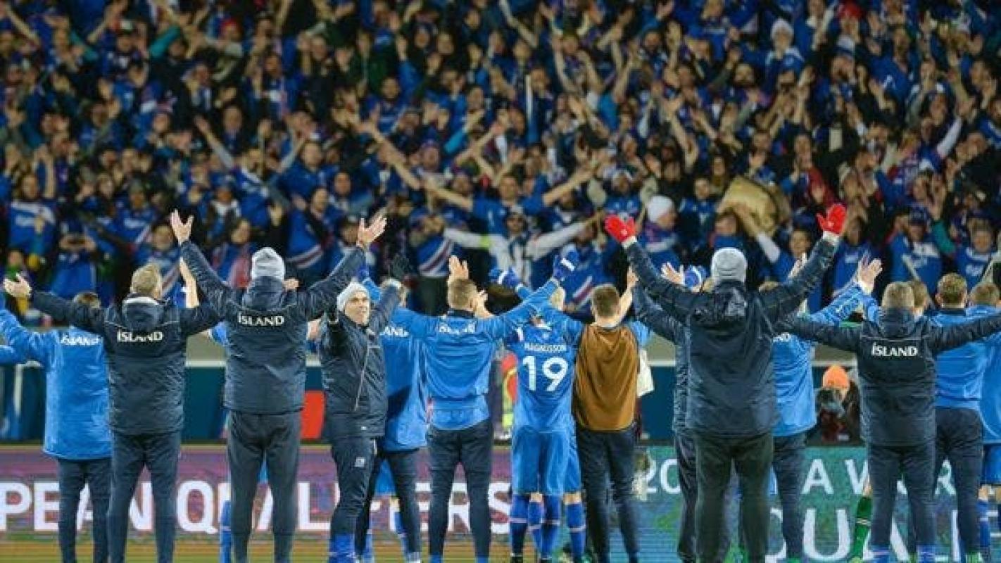 En este "rito", los jugadores islandeses dan la cara a su hinchada, y aplauden a un ritmo cada vez más rápido, gritando al unísono.