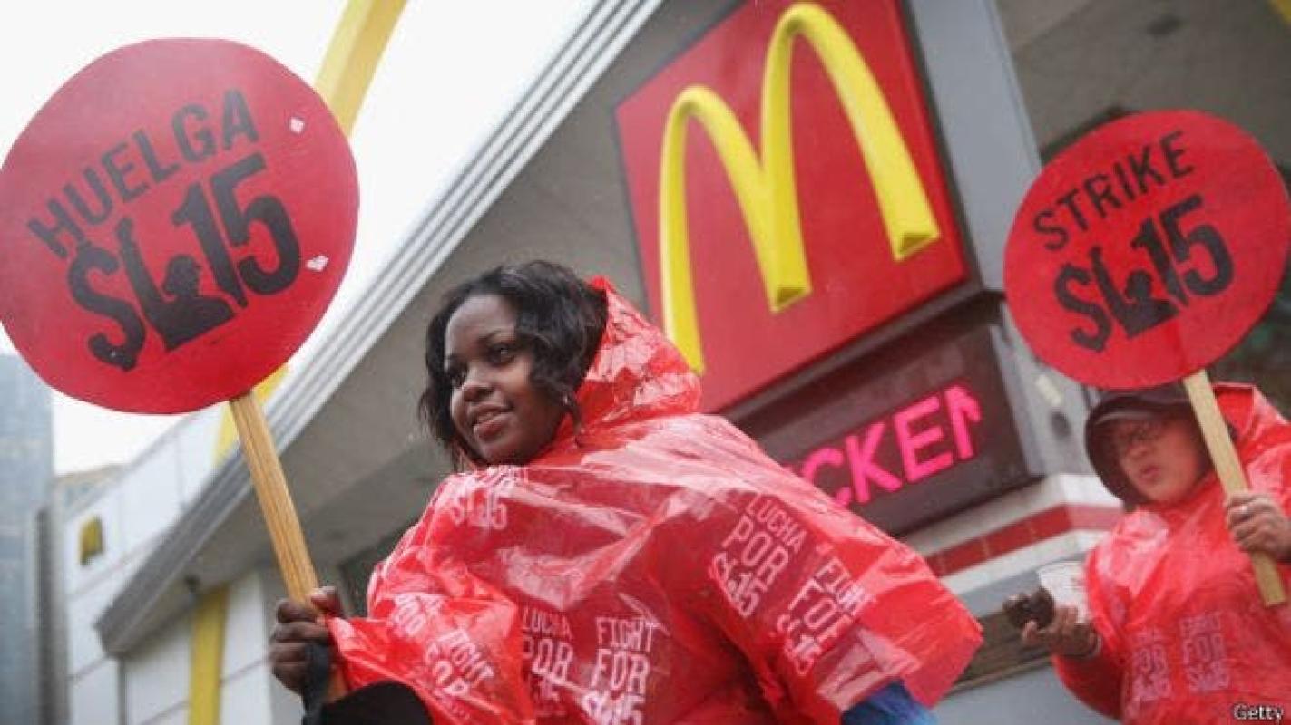El motivo es que, aseguran, mientras que los restaurantes propiedad de McDonald's subieron el salario de sus trabajadores en un dólar la hora, sus franquicias no lo hicieron.