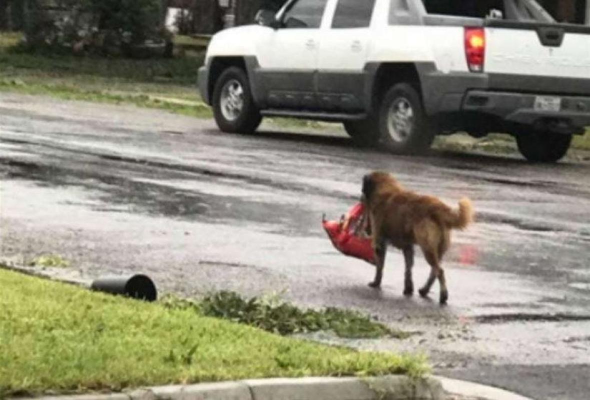 Fue también cuando Tiele Dockens, otra vecina de Sinton, lo vio con su gran bolsa de comida para perros, y quien algo sorprendida posteó la foto como una curiosidad de la emergencia.
