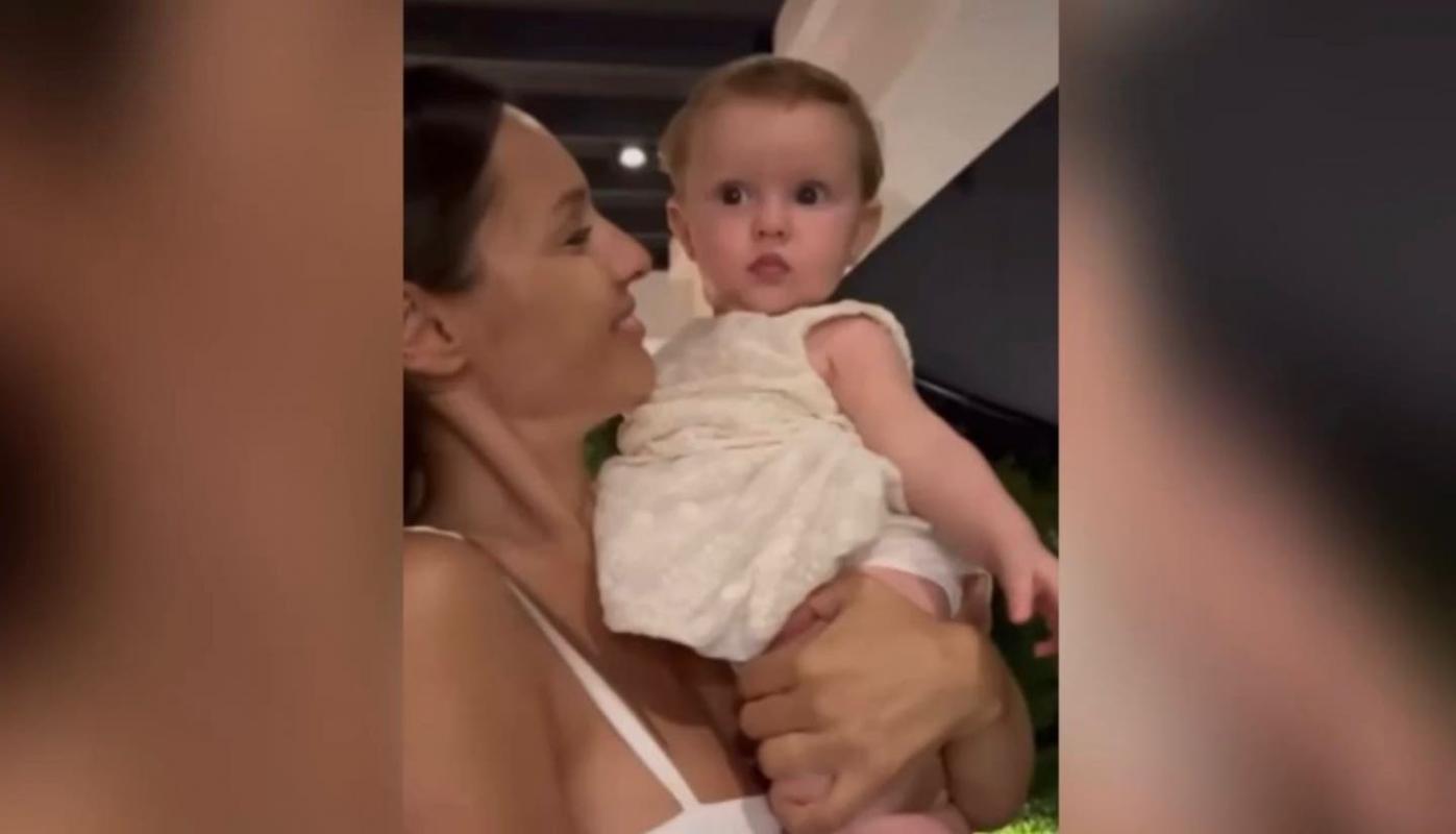 En las imágenes se ve a la argentina con su pequeña en brazos y mirándola con mucho amor. Fue en ese momento cuando la modelo esperó con una sonrisa que su hija dijera una de las primeras palabras que aprendió.