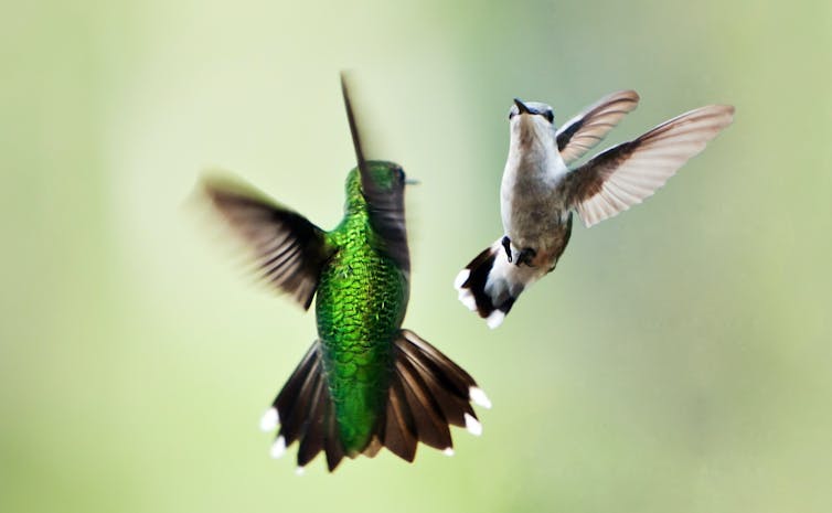 La exhibición sexual añade a la evolución del dimorfismo sexual de tamaño la dificultad para los machos grandes para ejecutar maniobras acrobáticas en el aire de manera atractiva. En el aire, cuanto más pequeño, mejor acróbata y menos riesgo.
