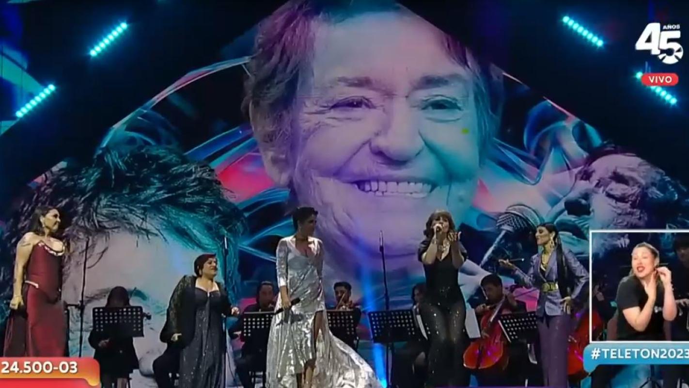 En el importante escenario de Viña del Mar se pararon Amaya Forch, Mariel Mariel, Johanna Oyaneder, Denise Malebran y Carolina Soto, quienes fueron las encargadas de realizar el homenaje a la artista chilena, lo que provocó una emocionante ovación.