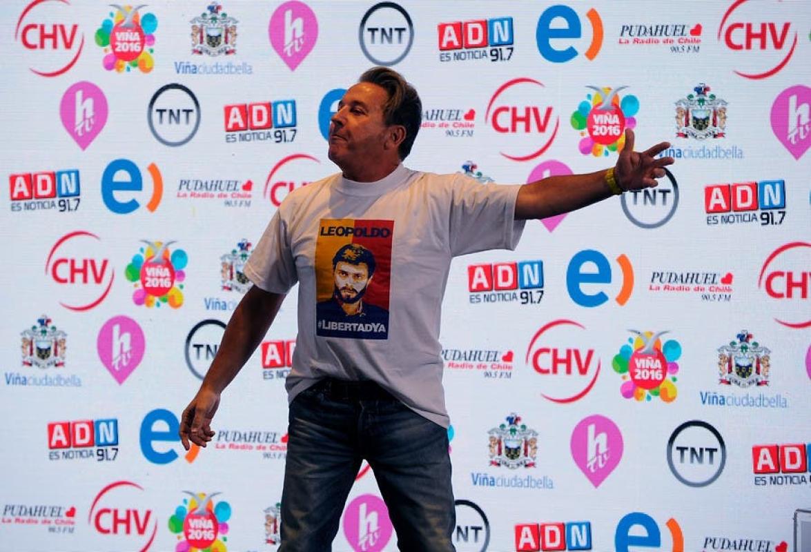 El cantautor mexicano, Ricardo Montaner, apareció esta mañana en la conferencia de prensa previo a la primera noche del Festival de Viña del Mar, con una polera alusiva al dirigente venezolano Leopoldo López, para quien pidió libertad junto con el alcalde Antonio Ledezma y ante el centenar de periodistas defendió la causa venezolana.