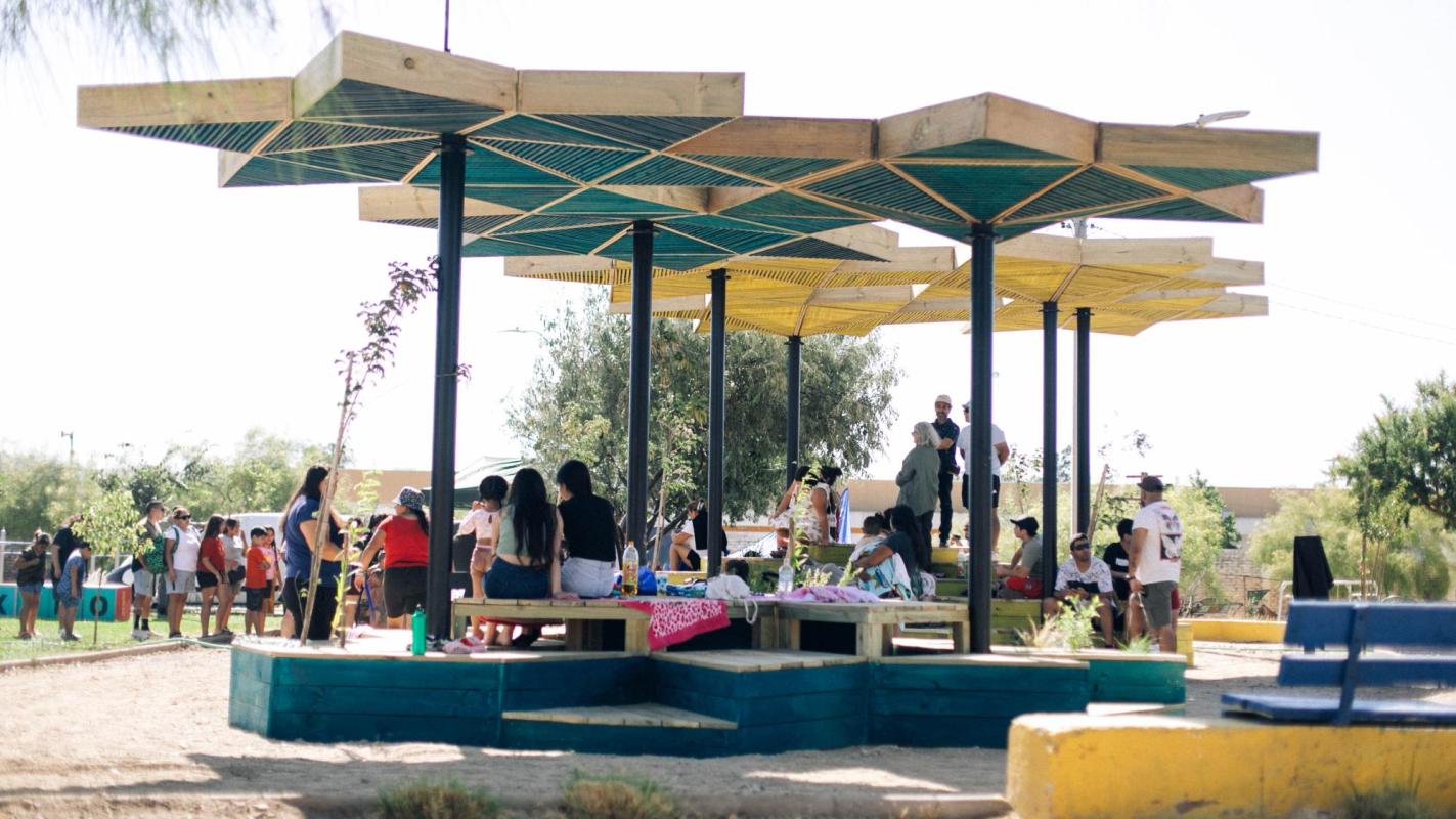 Durante el último año, la Plaza de Todos ha sido testigo de muchos encuentros, conversaciones, fiestas y activaciones. Las Semillas Urbanas generan sombra y crean lugares de descanso, con mesas y enchufes para la carga de aparatos electrónicos con USB. La estructura tiene módulos con distintos niveles que permite una multiplicidad de usos, como un escenario, espacios de juegos o reposo. Es un resultado de un trabajo conjunto,que simboliza cómo el sembrar una semilla puede traer frutos que iluminan y embellecen esta comunidad.