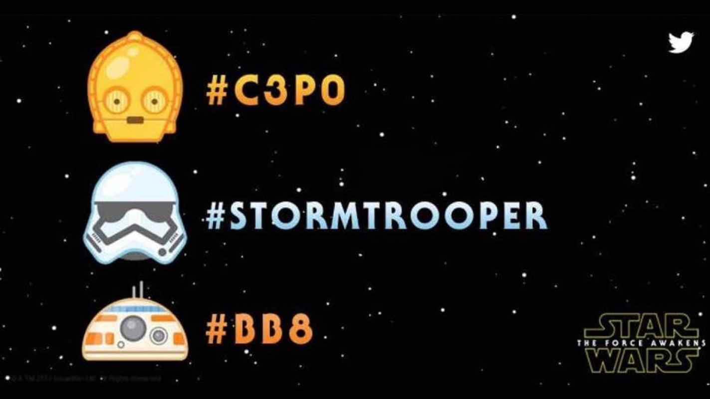 Cadía día queda menos para el estreno de "Star Wars: Episode VII - The Force Awakens" y, a raíz de la popularidad que han cobrado los emojis en redes como Facebook o Whatsapp, Twitter se asoció con Disney y Lucasfilm para crear tres emoticones exclusivos para los más fanáticos de "La guerra de las galaxias".