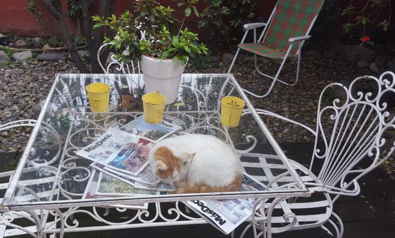 Una usuaria ha sorprendido con una particular pregunta captada en su propio patio. ¿El gato está encima o debajo de la mesa?