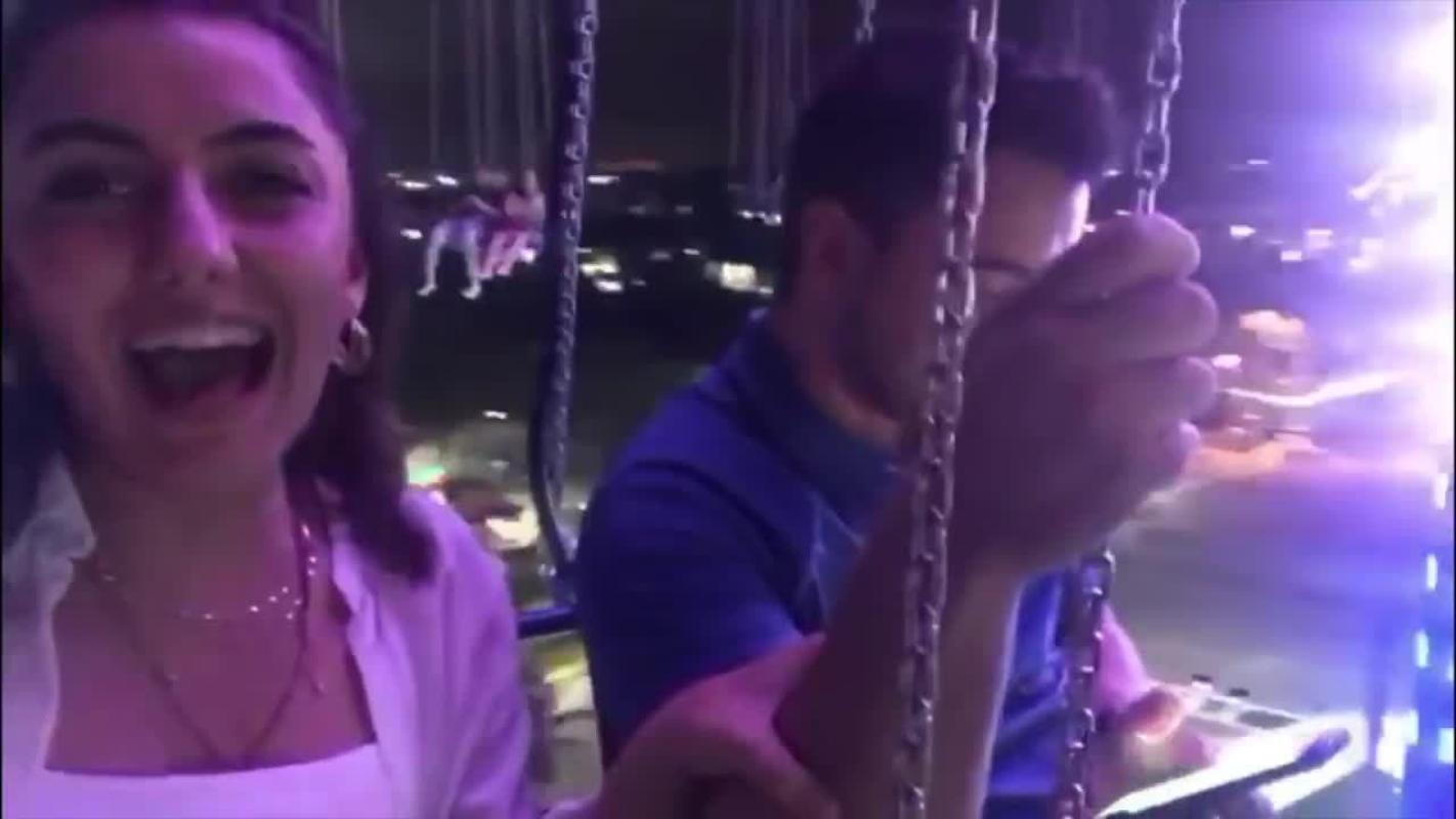 El registro pertenece a una mujer llamada Cansel Yildirim, quien se subió a una atracción de "sillas voladoras" en un parque de diversiones de Orlando. La joven comenzó a grabar un video, pero al cabo de unos minutos, por accidente suelta su teléfono, el cual comienza a dar vueltas por los aires, hasta caer al suelo.