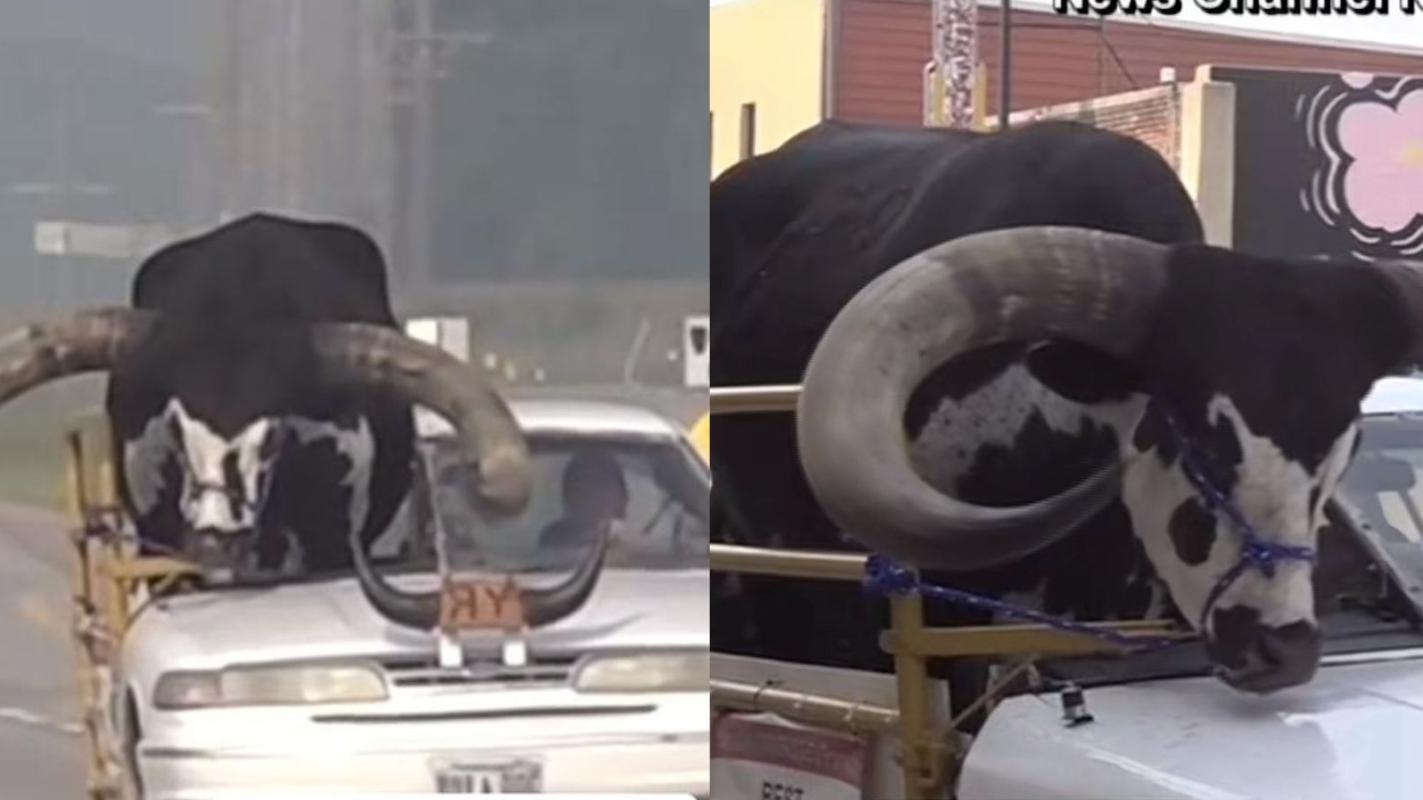 Un conductor fue visto en compañía de un inusual pasajero y no tardó en hacerse viral: Andaba con un toro como copiloto.
