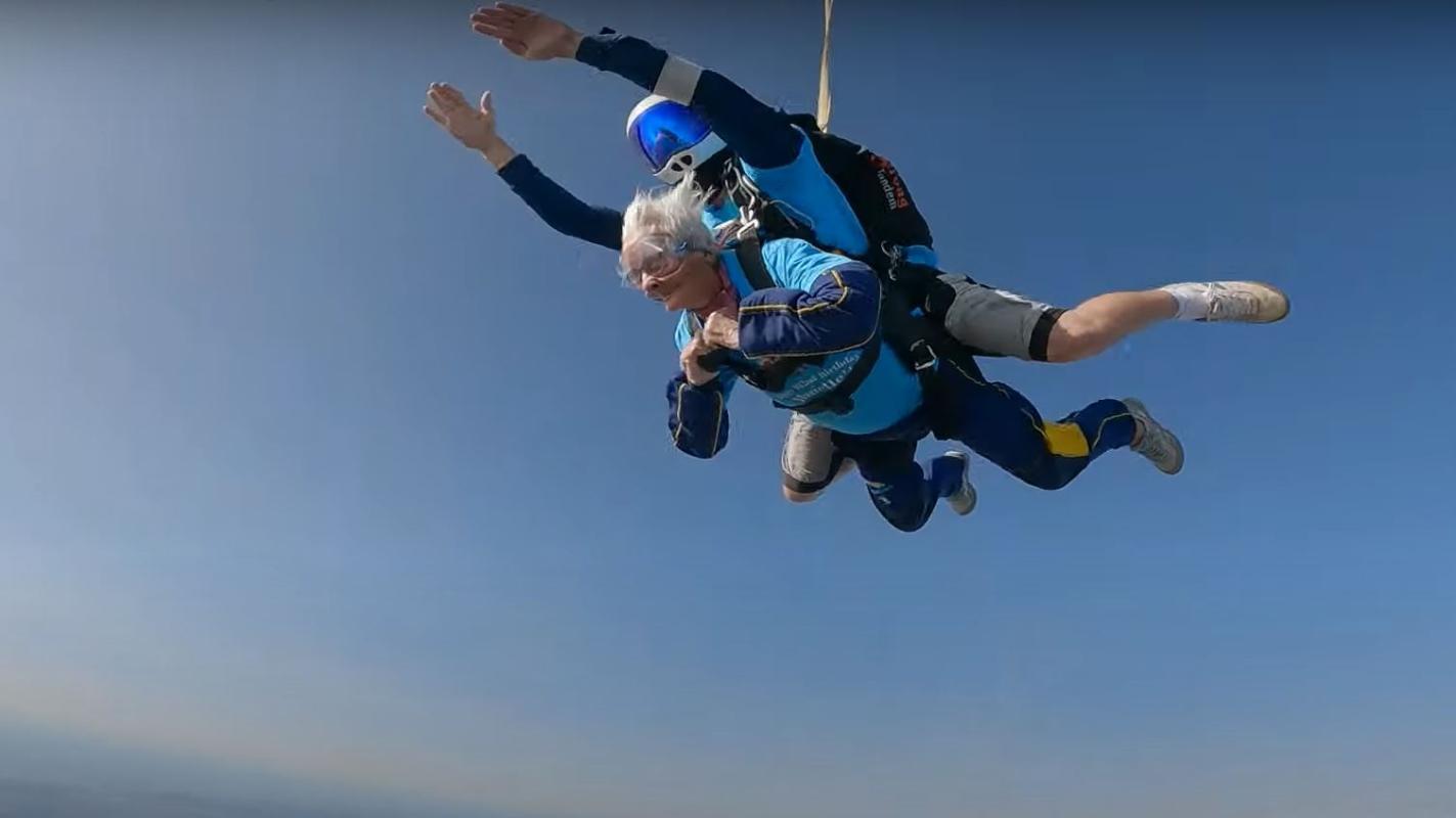 Abuela celebró su cumpleaños número 102: Lo hizo lanzándose en paracaídas