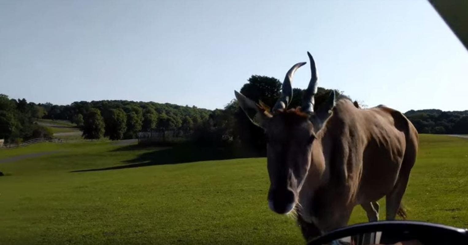 Una familia tuvo un encuentro con, lo que parece ser, un antílope con grandes cuernos espirales. En el video, el animal se acerca al auto, el conductor del vehículo intenta alimentarlo con su mano, pero este tenía una mejor idea y decide comer fuera del regazo del hombre.