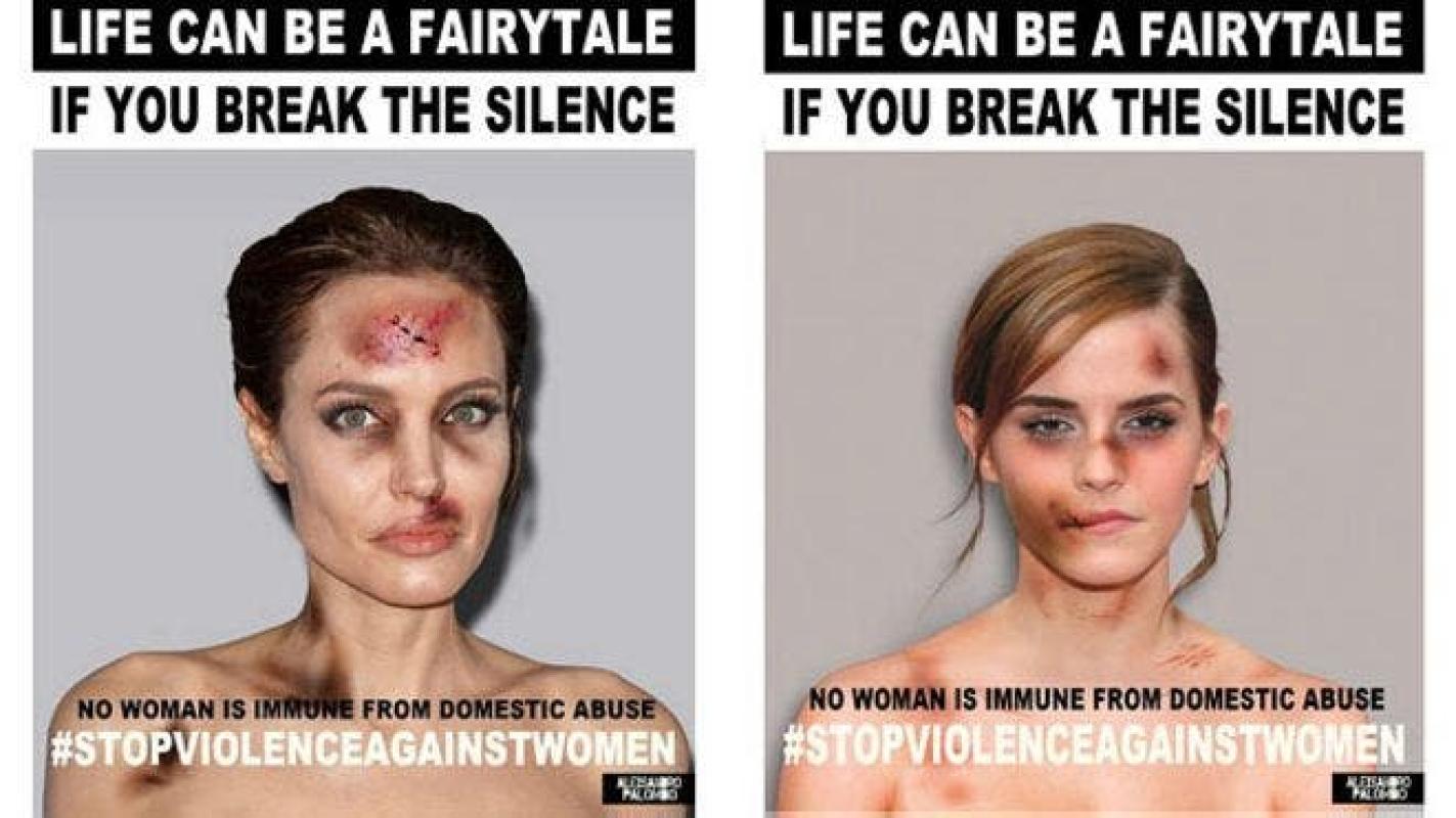 Una "paliza" a Angelina Jolie y Emma Watson para detener la violencia contra las mujeres