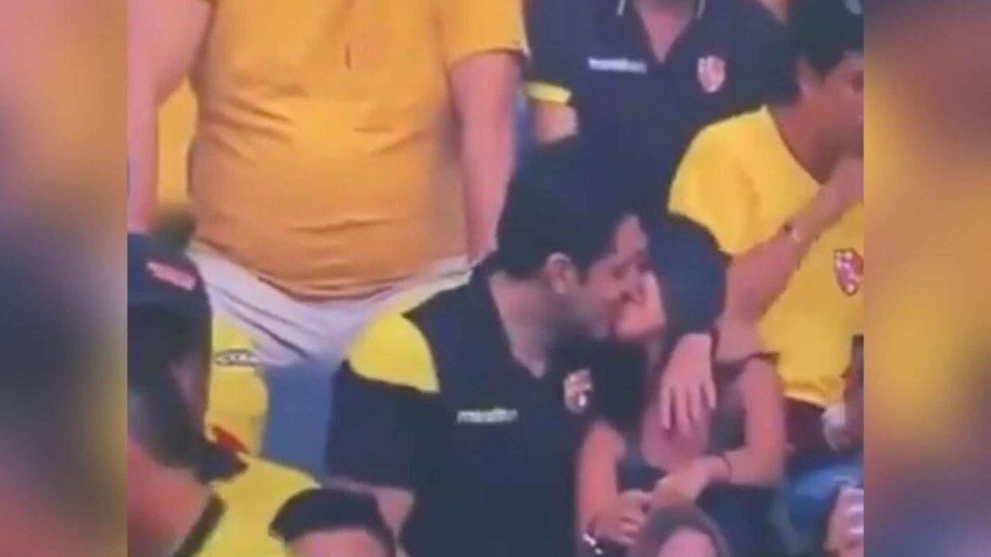 Y es que en medio del duelo entre Barcelona de Guayaquil y Delfín, una pareja fue captada por las cámaras.