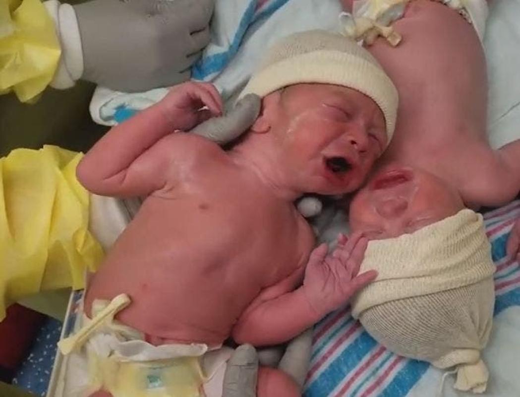 Los recién nacidos, prematuros por cuatro semanas, fueron grabados por su padre Dane Lyman, quienes apenas nacieron y fueron separados, comenzaron a llorar, sin embargo, una vez que los volvieron a juntar, el llanto cesó, conmoviendo a todos los presentes.