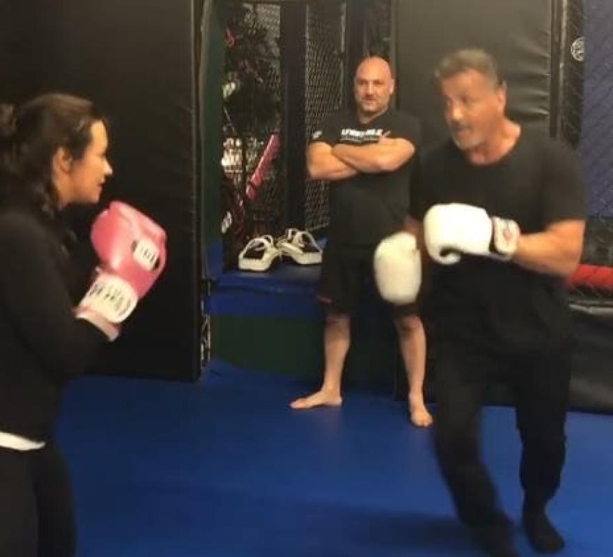 Demi Lovato practicaba boxeo junto a Sylvester Stallone en un gimnasio en Los Ángeles, cuando la cantante "noqueó" al actor.