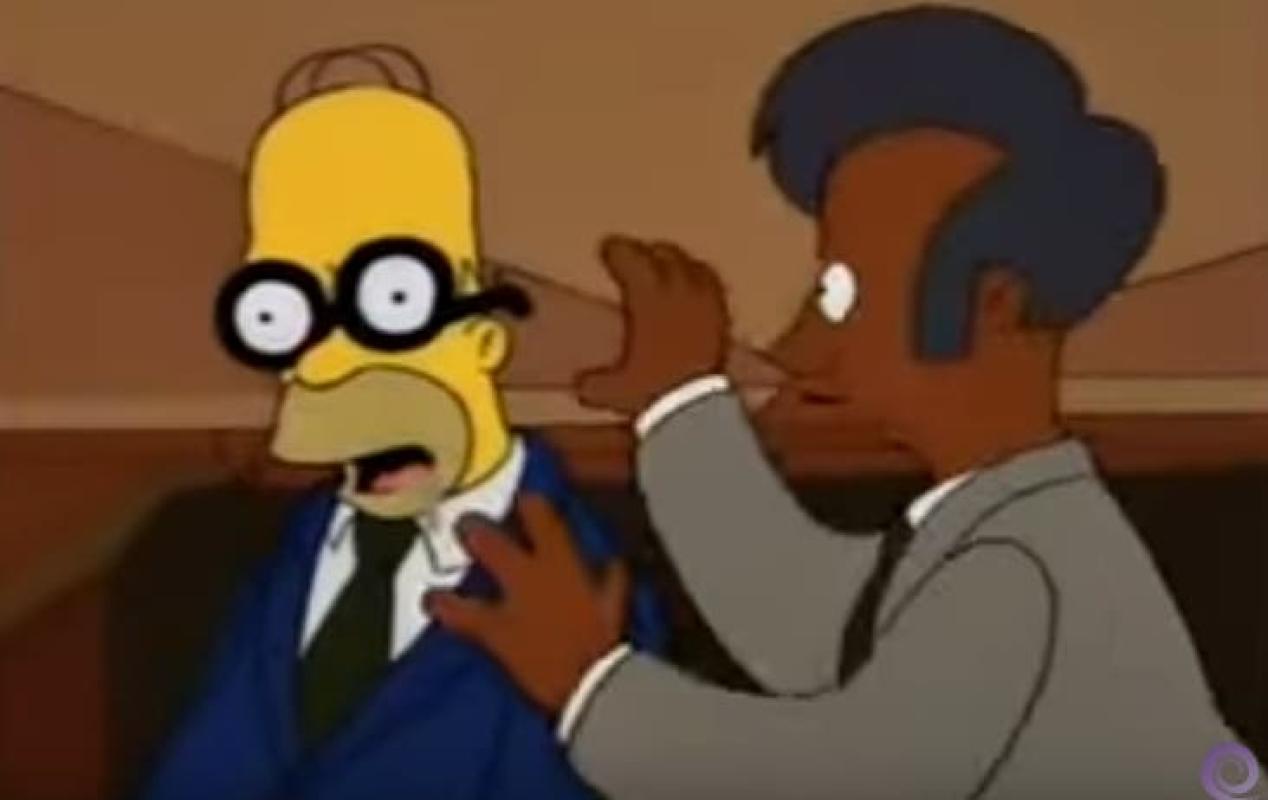 Los Simpson cada vez sorprenden más con sus "predicciones del futuro" o con buenas ideas para imitar en la vida real. Tal es el caso de un padre que decide utilizar el truco de los "anteojos con ojos" para dormir mientras cuida a su bebé.