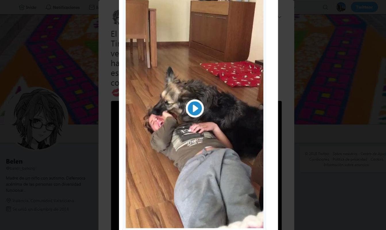 La usuaria de Twitter @belen_beleng publicó un registro que conmovió en las redes sociales. En él, se aprecia a una perra que ayuda a un joven con autismo.