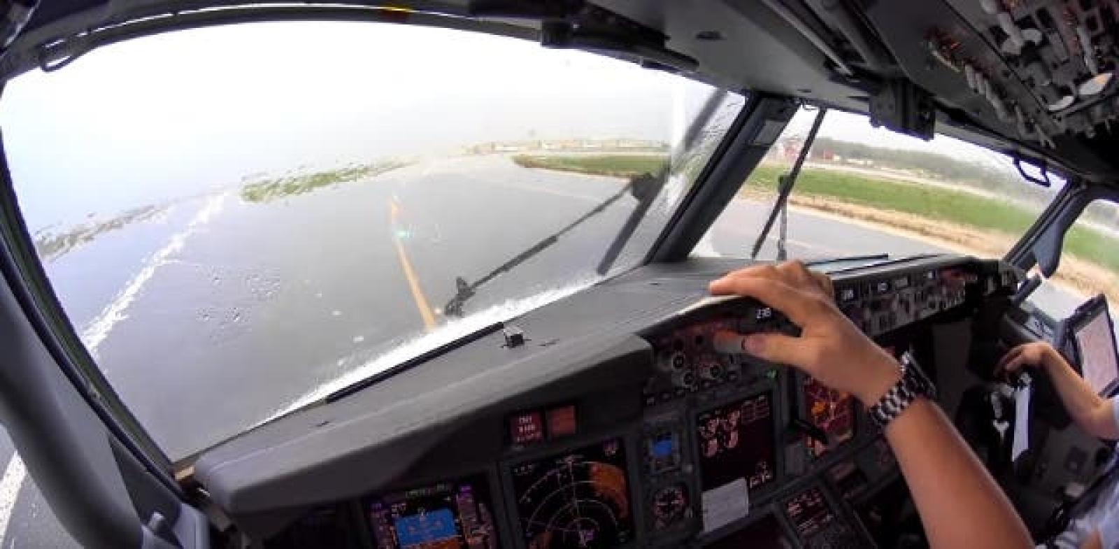 La imagen claramente no es posible apreciarla desde un asiento en clase turista. Por eso, el sitio perfecto para “disfrutar” de un aterrizaje en medio de una tormenta es la cabina del piloto.