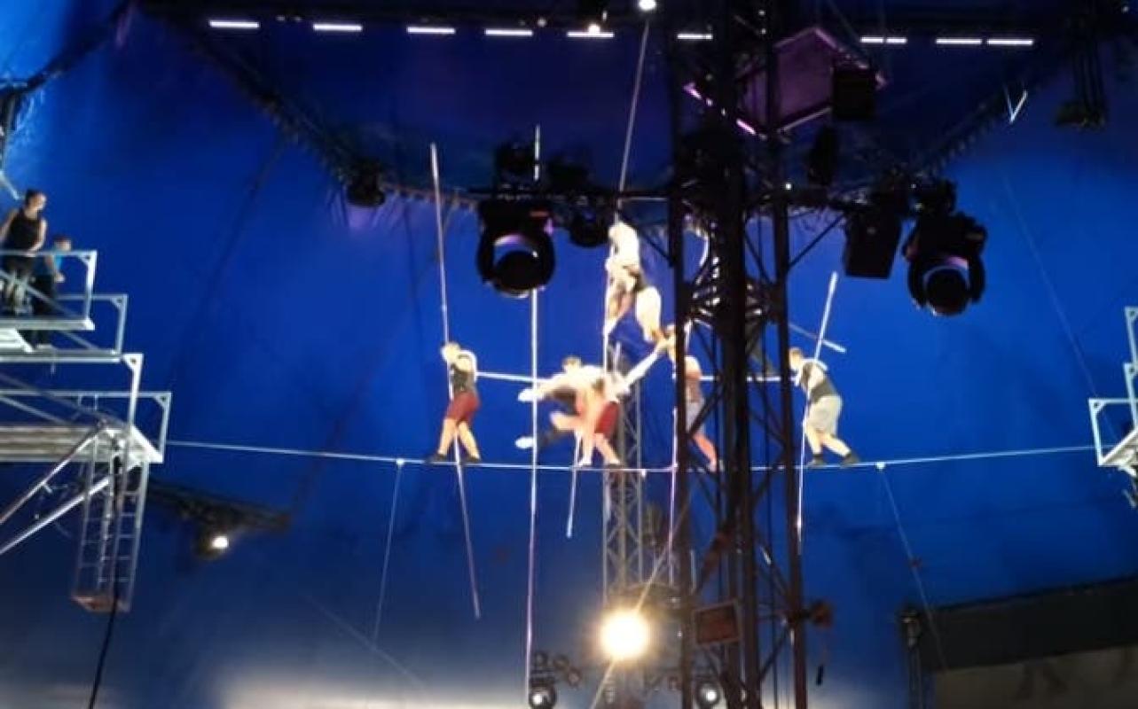 Las imágenes inéditas de un accidente, en pleno ensayo de un grupo de acróbatas, fue liberado esta semana. En el registro se observa a ocho equilibristas que caen desde diez metros de altura, al intentar hacer una pirámide humana sobre una cuerda floja.