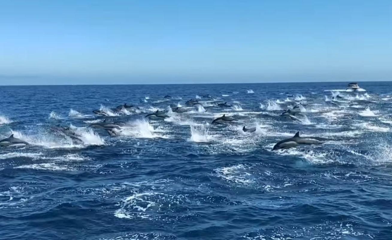 Una estampida de más de 300 delfines fue capturada en video el domingo pasado en las aguas de la costa de Dana Point, al sur de California. El registro fue captado por un observador de ballenas.