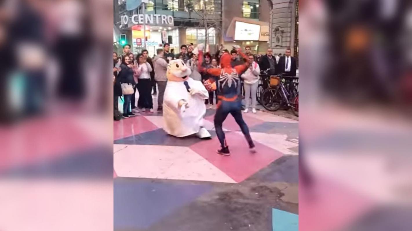 [VIDEO] Inédito crossover: Doctor Simi y Sensual Spiderman bailaron cueca en el centro de Santiago