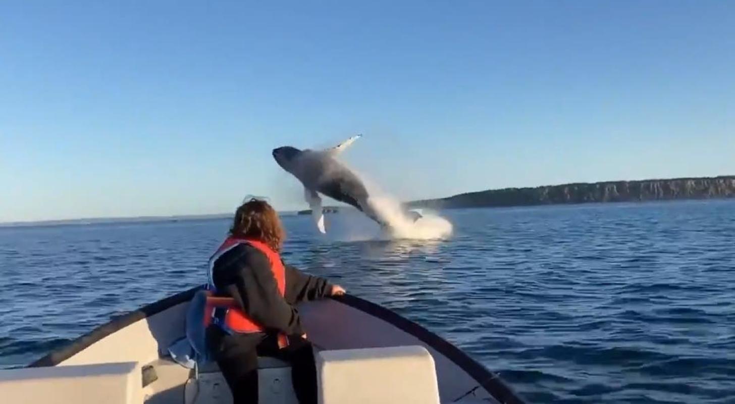 Un hombre llamado Sean Russell y su hija Sarah, de diez años, se encontraban pescando en la isla canadiense de Terranova, cuando vieron a dos ballenas jorobadas y comenzaron a grabar, sin saber que terminarían registrando un maravilloso espectáculo.