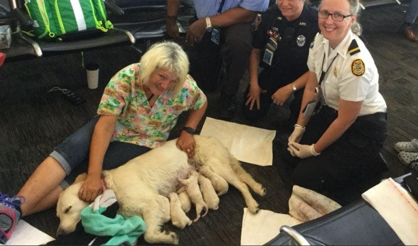 Un inesperado y feliz episodio se vivió en medio del aeropuerto de Tampa en Florida, Estados Unidos. Una perra labrador de dos años se puso a dar a luz de sorpresa.