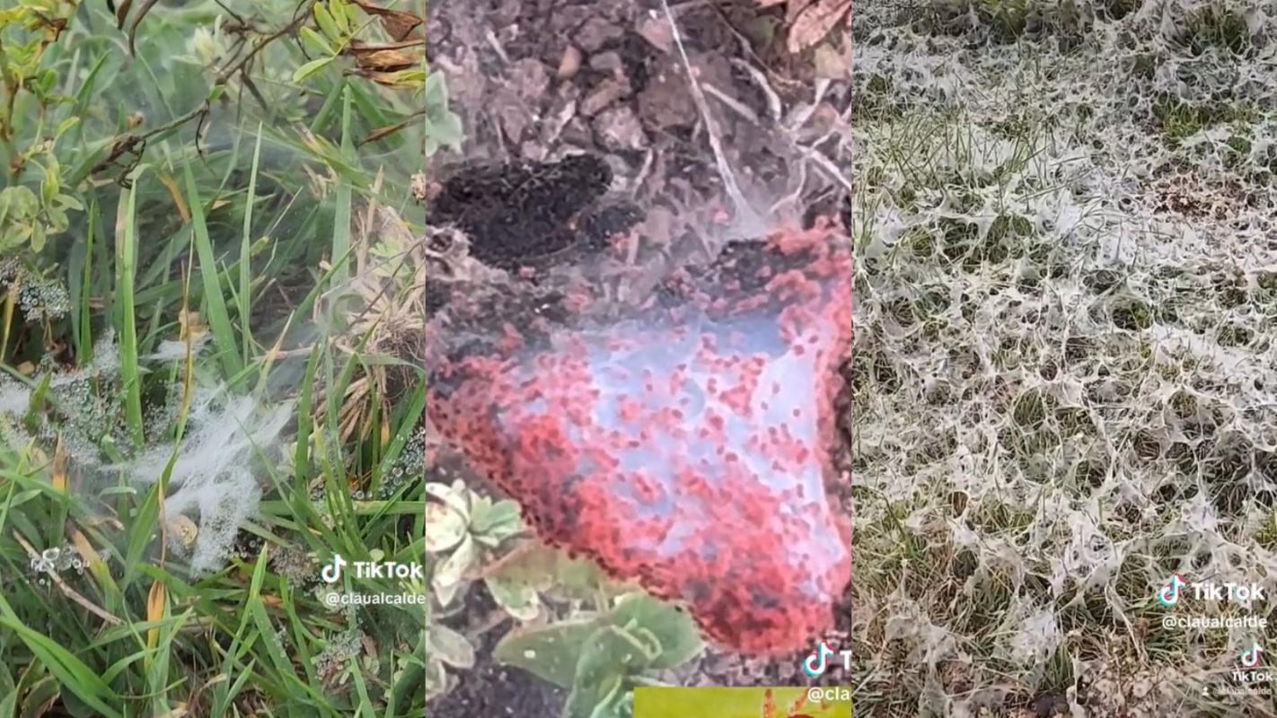 "Todo eso blanco que parece hielo, no es hielo. Son millones de arañas que están formando muchas telas de arañas”, relató Claudia Alcalde, quien grabó el viral que cuenta con más de 2,6 millones de reproducciones.