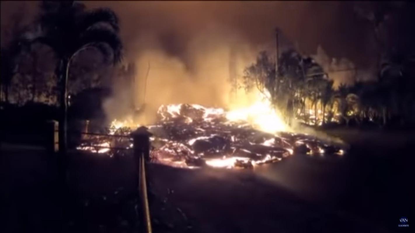 La secuencia fue captada por cámara fija que muestra una de las carreteras de acceso a Pahoa, en donde los ríos de roca fundida engullen todo lo que se encuentra a su paso, como casas, tierras de cultivo y zonas de vegetación, entre otros.
