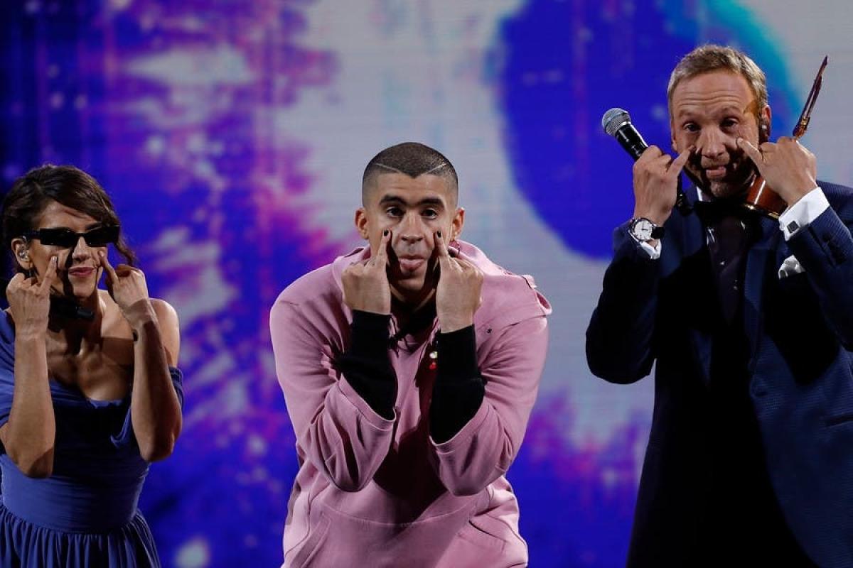 Para inmortalizar la presentación, el conejo malo se tomó una fotografía en el escenarios de la Quinta, junto a los animadores y al público, haciendo el clásico gesto de Bad Bunny con los meñiques en la cara.