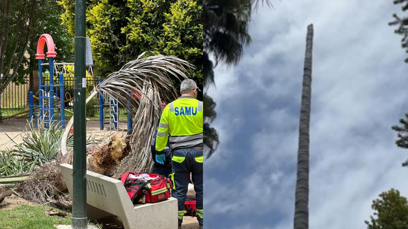 El incidente ocurrió en la Plaza Rioja, ubicada en la intersección de calles Quillota con 4 Norte, donde la copa de la palmera se desprendió de su tronco, cayendo sobre la víctima.