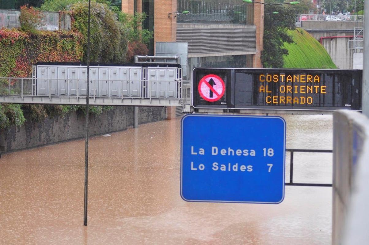 Las aguas del río Mapocho que ayer inundaron Providencia también afectaron a la autopista urbana, donde el agua entró y se acumuló en los túneles -que están en pendiente- a la altura de Vivaceta.