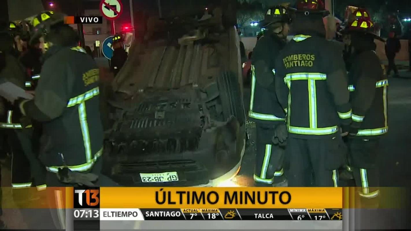 Un choque se produjo en la Costanera Andrés Bello en la comuna de Providencia. Según señaló la Unidad Operativa de Control de Tránsito, producto del impacto un vehículo se volcó a la altura del Puente del Arzobispo en dirección al poniente.